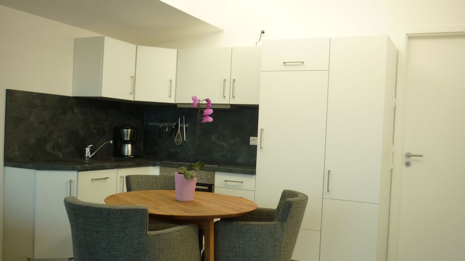 4 Zonen Cerankochfeld, Backofen, Einbauküche, Kühlschrank mit Gefrierfach, Geschirrspüler, Kaffeemaschine, Toaster, Wasserkocher, Staubsauger